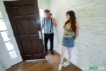 Lana Smalls and Myra Moans, tattooed brunettes with small natural tits, kick off nude on the bed, kneeling to slurp Victor Ray's throbbing big dick together, drooling and gazing up hungrily. They tag-team his shaft, one holding it while the other licks balls. Victor pounds Myra doggy-style, her ass up and pussy spread, while Lana fingers and eats her wet slit from below. Lana rides reverse cowgirl on Victor's massive cock, panties shoved aside, as Myra grinds face-sitting on his tongue. Myra bends over in denim shorts pulled down, vulva exposed for deep thrusts. They kiss sharing his dick, then Victor rails both missionary, legs hoisted high, ending in explosive cum shots on their faces and tits.
